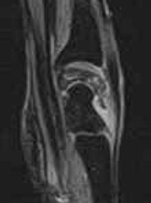 degenerative arthrosis of the lunate and carpus. Hyperintense