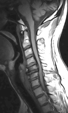 to the C7 vertebral levels with resultant canal stenosis and